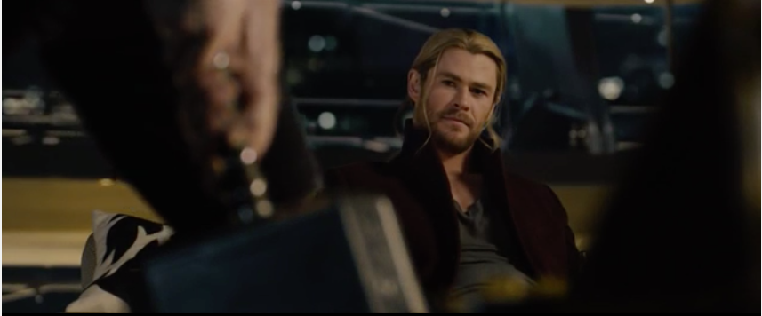 The trailer that was released during S.H.I.E.L.D. is quite similar to the leaked trailer, but not the same, and as anyone knows, the Devil is in the details. The fist, and most noticeable difference is that there’s an extended party scene (which the first trailer only touches upon), where Tony Stark (Robert Downey, Jr) and Jim Rhodes (Don Cheadle) attempt to lift Thor’s hammer.