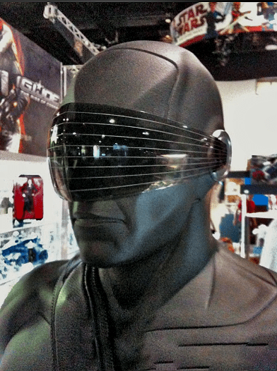 As you can see from the picture to the left, it’s (I assume) molded to the face of the individual who happens to be wearing it, which is really dumb because it serves no purpose beyond someone – likely Stephen Sommers – thinking it’s cool.