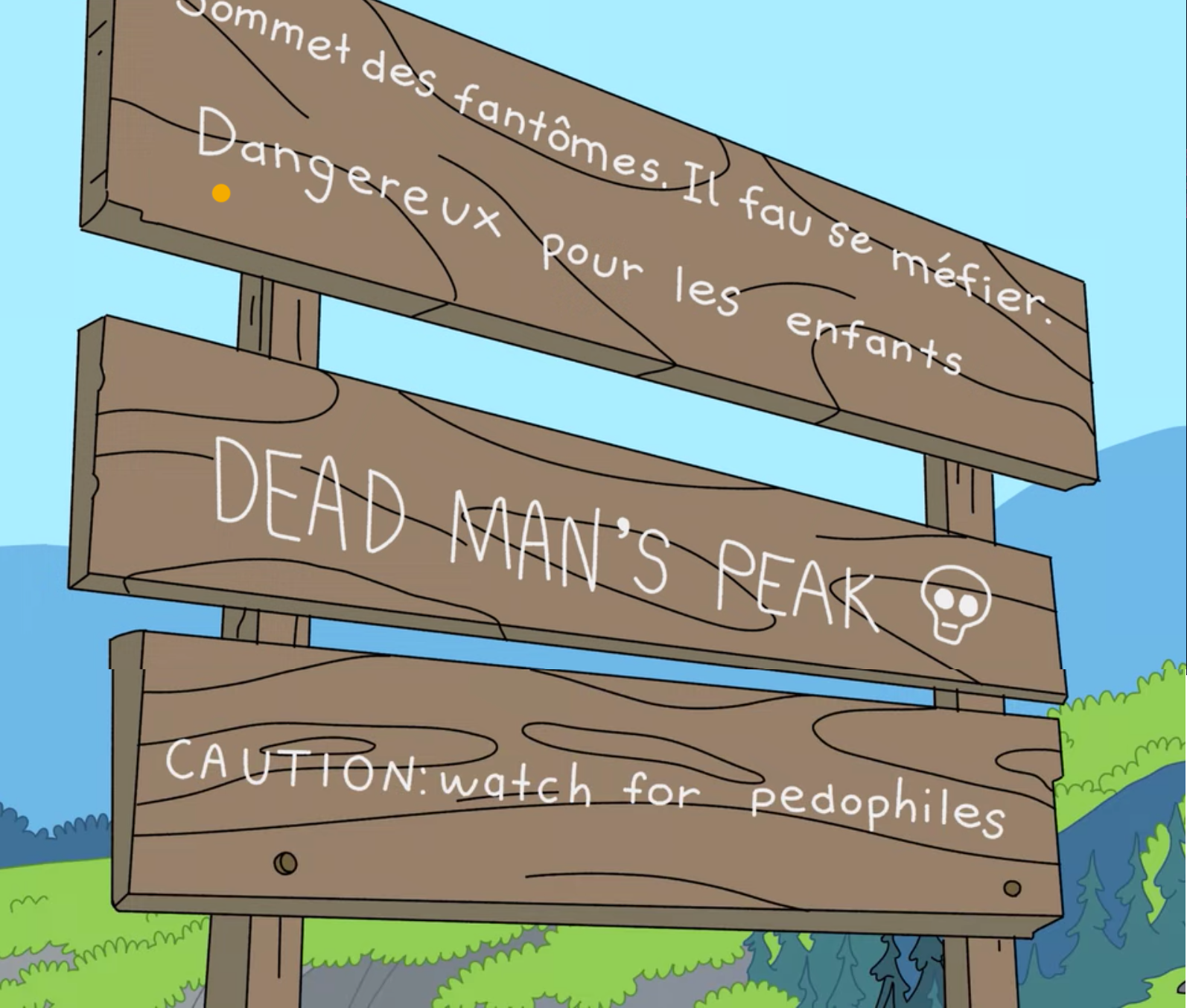 For example, here’s a running joke from the Season One, Episode 11: Feed The Beast, which you don’t need be able to read French to understand.