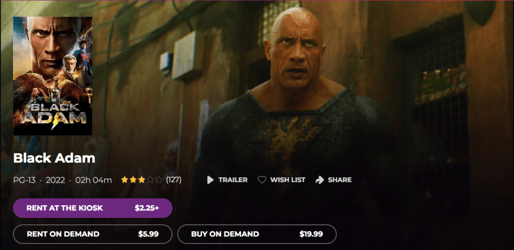 Warner Bros/New Line/DC Films’ Black Adam is available for stream on Redbox for $6.99, and while I think it’s overpriced I have to admit that I’m tempted.